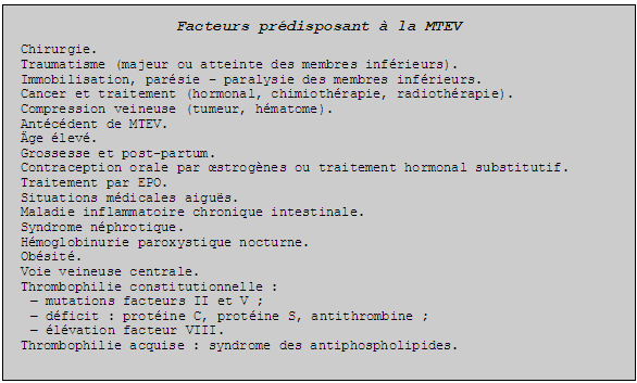 Elle est souvent favorisée par un contexte particulier, postopératoire, obstétrical ou médical.