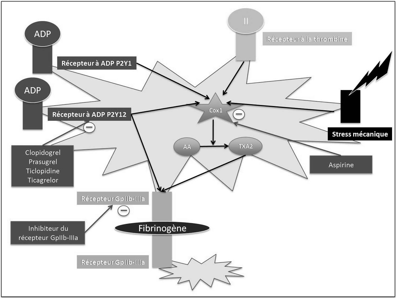 Certains d’entre eux agissent au niveau de l’hémostase primaire et empêchent l’activation et l’agrégation plaquettaire : ce sont les anti-agrégants plaquettaires (figure 1).