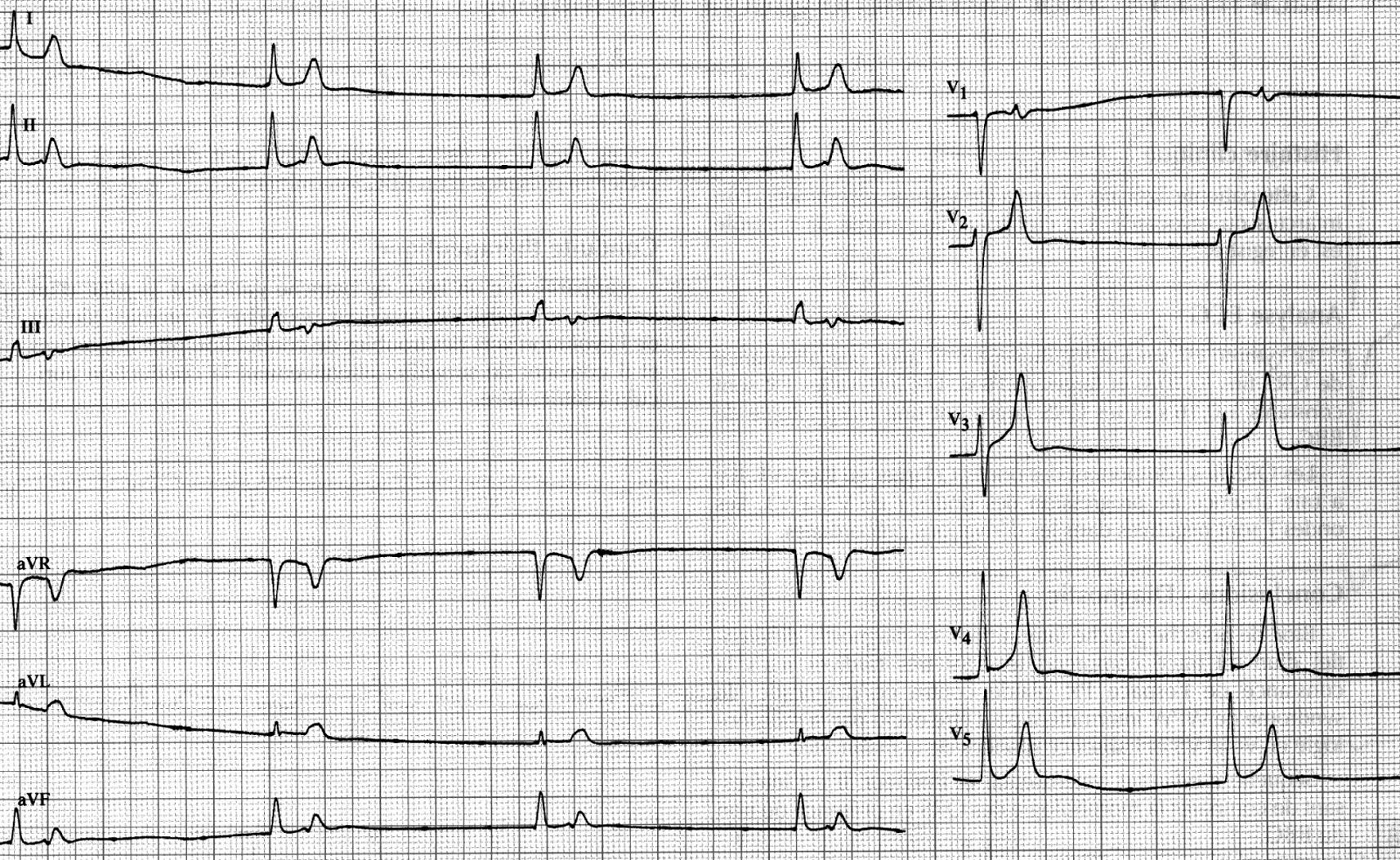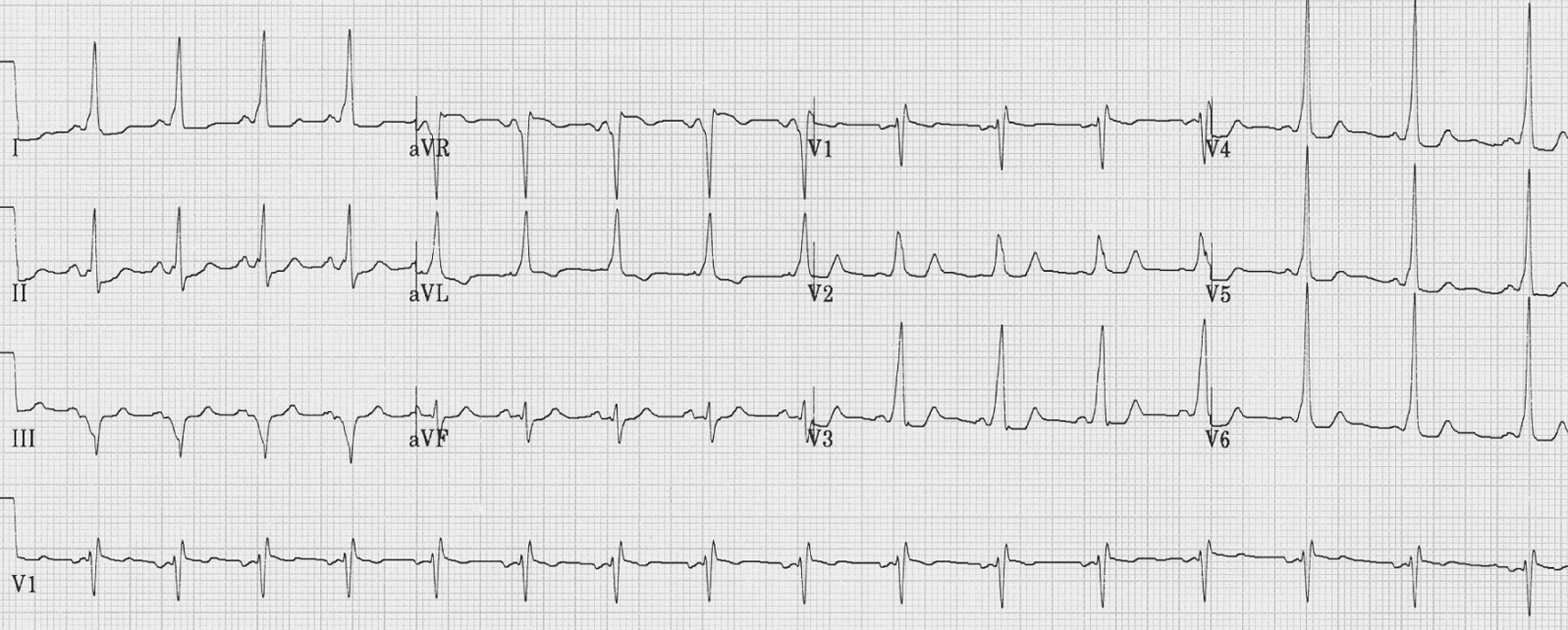 Les QRS ne sont pas encore larges, mais les ondes T sont géantes.