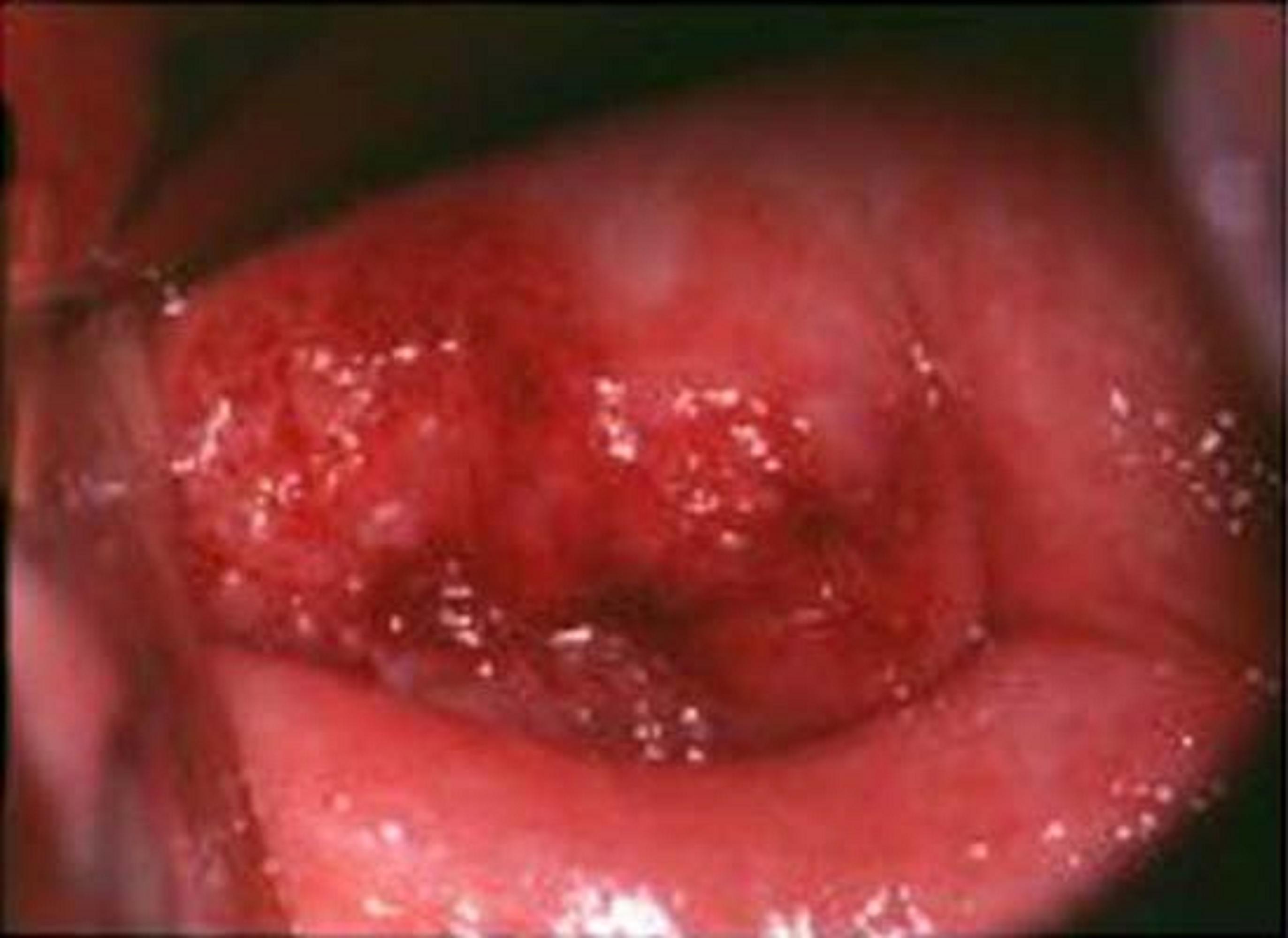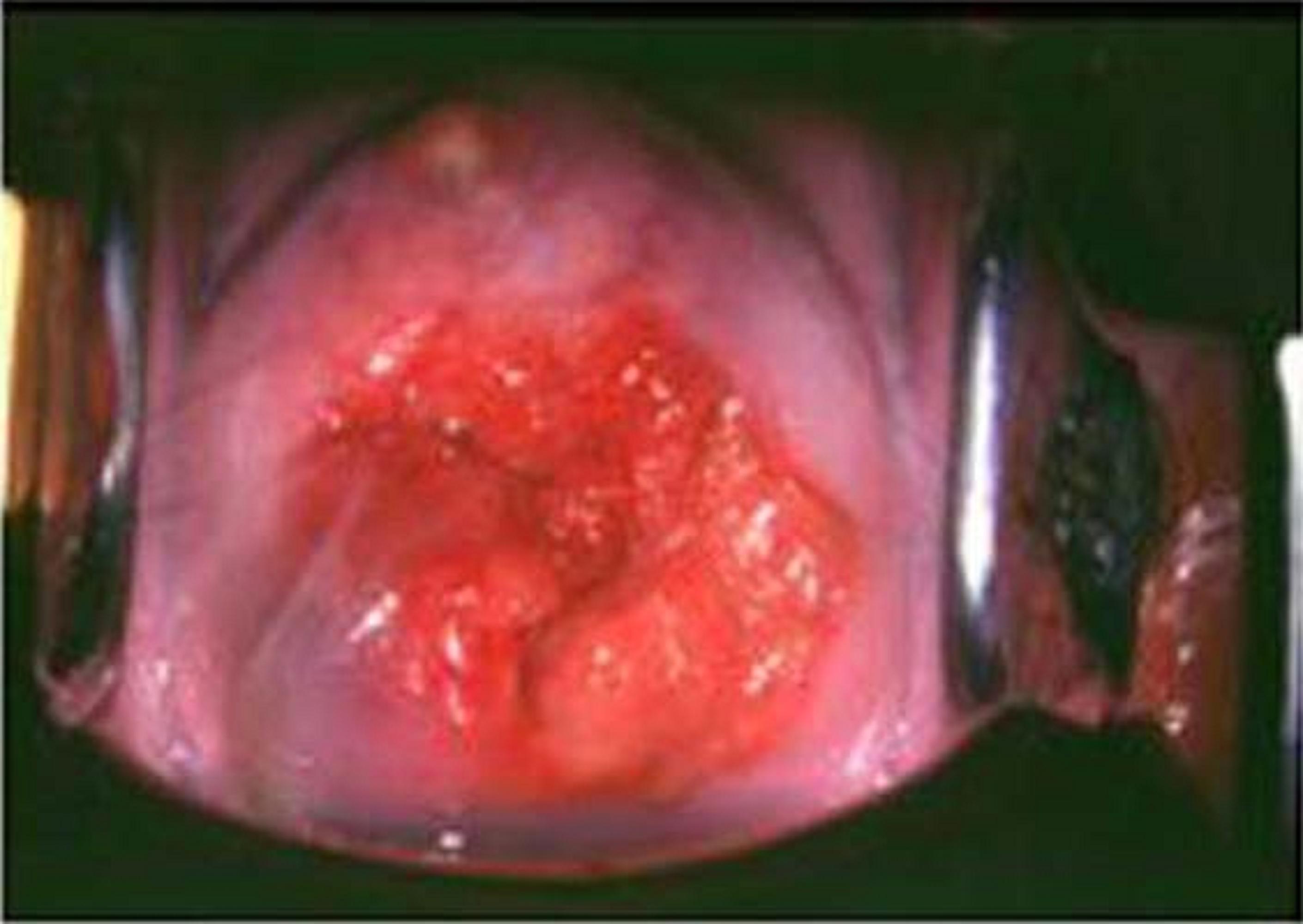 Métrorragies spontanées : en l'absence de rapport sexuel, la symptomatologie sera plus tardive et l'accroissement de la lésion finira par provoquer des métrorragies spontanées.