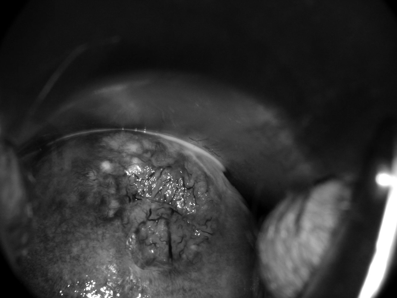 L’observation sans préparation qui commence au faible grossissement. À ce stade de l’examen, on peut utiliser le filtre vert pour l’observation des vaisseaux (figure 18.6).