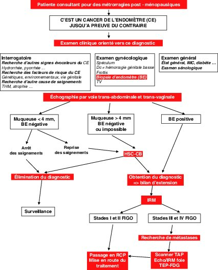 Figure 18.17 Arbre décisionnel devant une patiente présentant des métrorragies post-ménopausiques.
