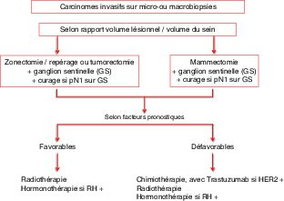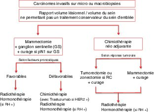 Figure 20.11 Arbre décisionnel : prise en charge thérapeutique des carcinomes invasifs opérables d’emblée.