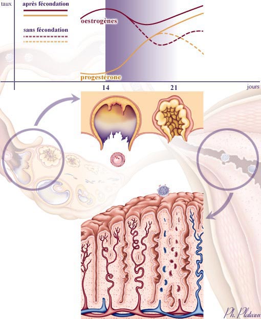 Les modifications de l'endomètre sont celles de la 2ème phase du cycle :