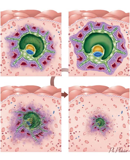 - hémorragie provoquée par l'activité anarchique du syncytio‑trophoblaste.