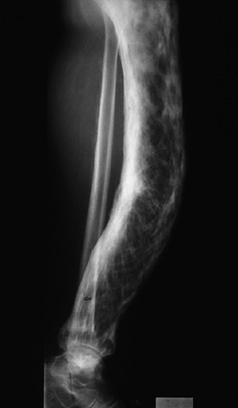Les déformations osseuses sont observées souvent tardivement : hypertrophie crânienne, hypertrophie d’une articulation périphérique, incurvation d’un os long (fémur en crosse à convexité antéro-externe, tibia en « lame de sabre », etc.).