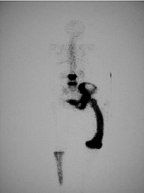 La scintigraphie osseuse au 99mTc permet de faire une cartographie de la répartition des lésions pagétiques qui apparaissent sous la forme de foyers hyperfixants (figure 1.9).