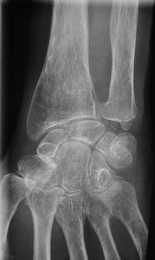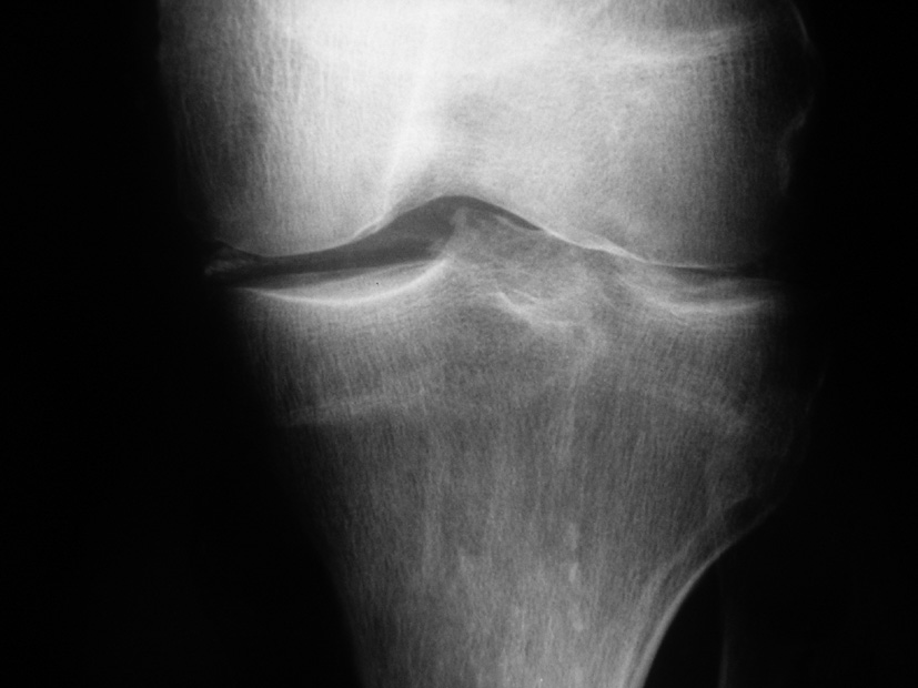 Dans ses antécédents, vous notez une arthrite du genou droit il y a un an — elle vous apporte une radiographie de cette époque —, une hypertension artérielle traitée par Nifédipine, une appendicectomie.