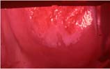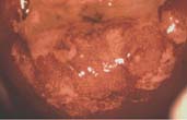 a) Dans sa phase débutante, elle est invisible à l’examen sans préparation où l’on note simplement une zone rouge irrégulière correspondant à l’ectropion.