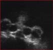 Cristallin : Cercles échogène en coupe frontale, écho linéaire en coupe horizontale