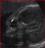 - Diagnostic facile en cas de ventricule unique dilaté (zone anéchogène en arc de cercle ouvert vers l’arrière). Fosse postérieure normale. L’étude de la face viendra conforter le diagnostic.
