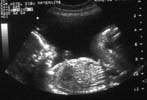 Oreilles : On reconnaît la forme du pavillon en coupe tangentielle. Une appréciation basse des oreilles s’effectue par rapport à l’épaule fœtale (en l’absence d’incurvation latérale du rachis cervical) ou par rapport à l’orbite.