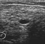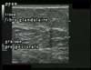 Ligne hyperéchogène des ligaments de Cooper (qui suspendent la glande au plan cutané) encore très fins. Le fascia superficialis préglandulaire est désorganisé par l’implantation dermique de ces ligaments et ne peut être suivi. Il n’existe donc pas encore de plan de clivage entre la glande et la peau.