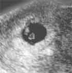 Simple épaississement échogène sur la vésicule vitelline de 2 à 4 mm.