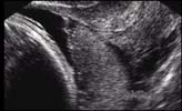 - Interruption de la ligne échogène externe du segment inférieur, voire extension de tissu placentaire dans le vessie traduisant un placenta percreta.