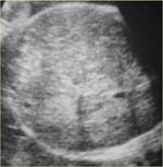 Echographiquement: - Masse purement échogène dans 75 % des cas, souvent homogène et bien délimitée.