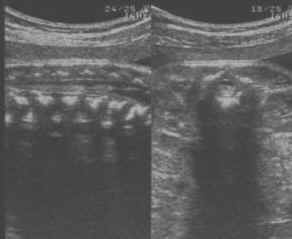 Le diagnostic de myéloméningocèle est porté par la présence au sein de la hernie méningée de travées échogènes neurologiques.