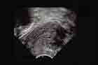 - Plus particulièrement au niveau des cornes, la jonction endomètre-myomètre perd ses limites régulières et harmonieuses. A partir de celle-ci se projettent dans le myomètre, sous forme radiaire, des travées hyperéchogènes minces, pouvant confluer vers les éléments cavitaires ou nodulaires donnant au myomètre para-cavitaire un aspect brillant.