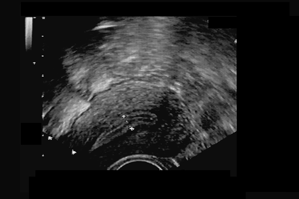 Utérus normal. Myomètre homogène - jonction endomètre/myomètre linéaire, arrondi au fond.
