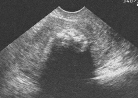 Myome calcifié. Cône d’ombre postérieur (Cliché : Dr. C. TALMANT)