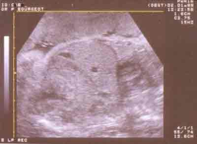 Coupe sagittale en fin de grossesse montrant le diaphragme : bande arciforme anéchogène