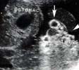 - Contenu : intestin grêle, foie, vésicule, estomac, ascite...,