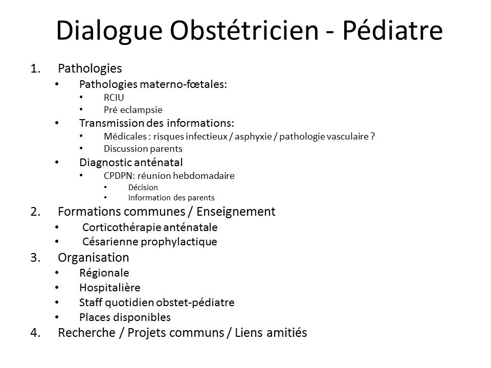 Le dialogue obstétricien-pédiatre