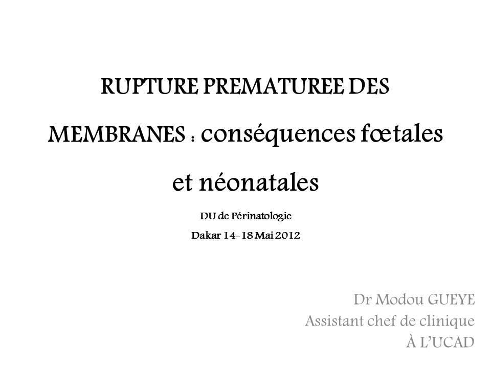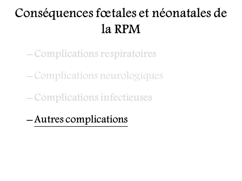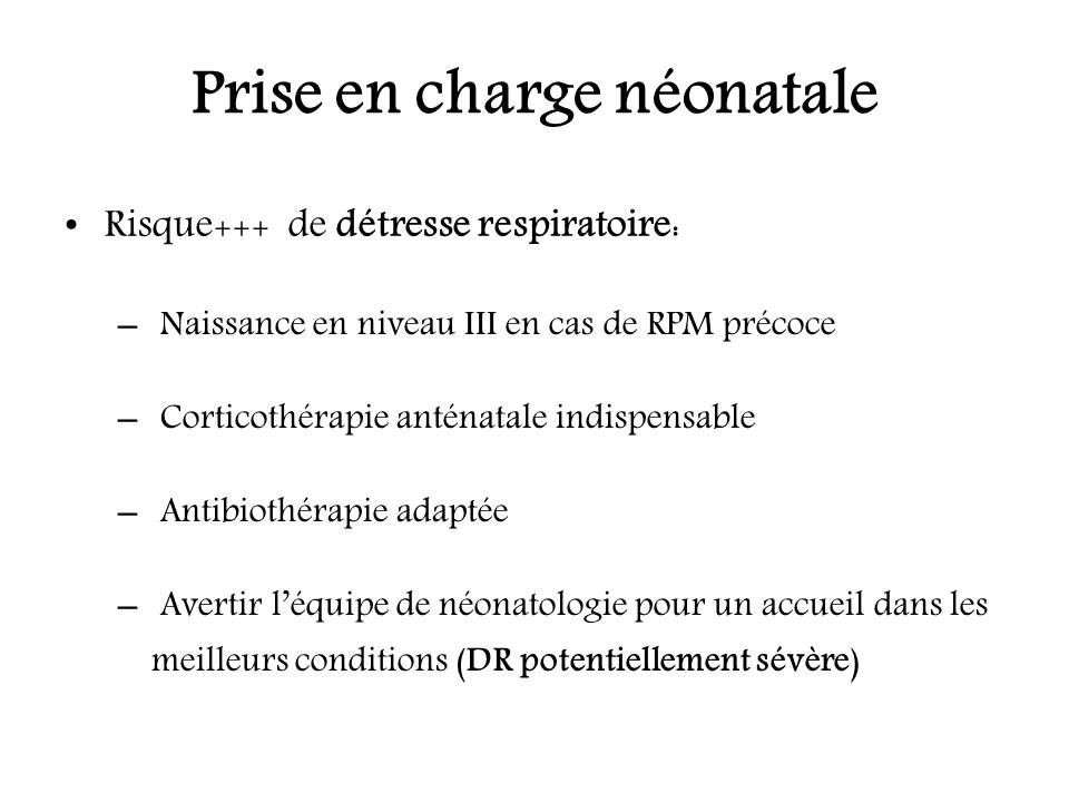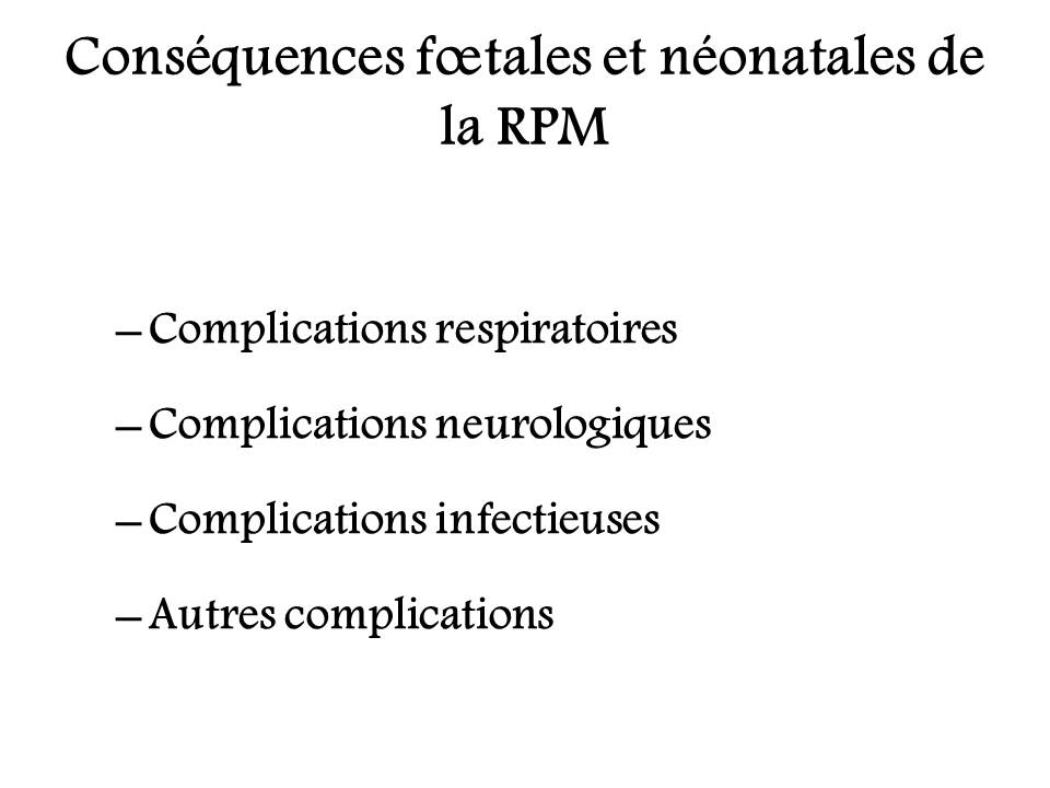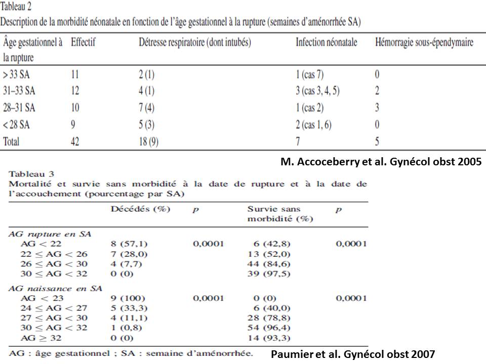 Rupture prématurée des membranes : conséquences fœtales et néonatales.