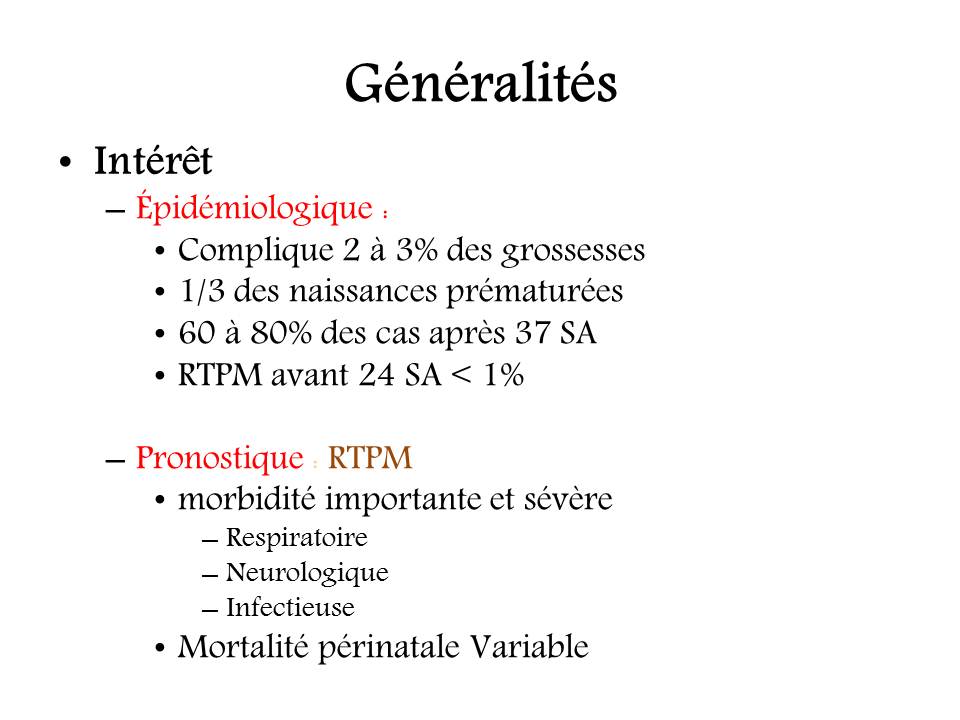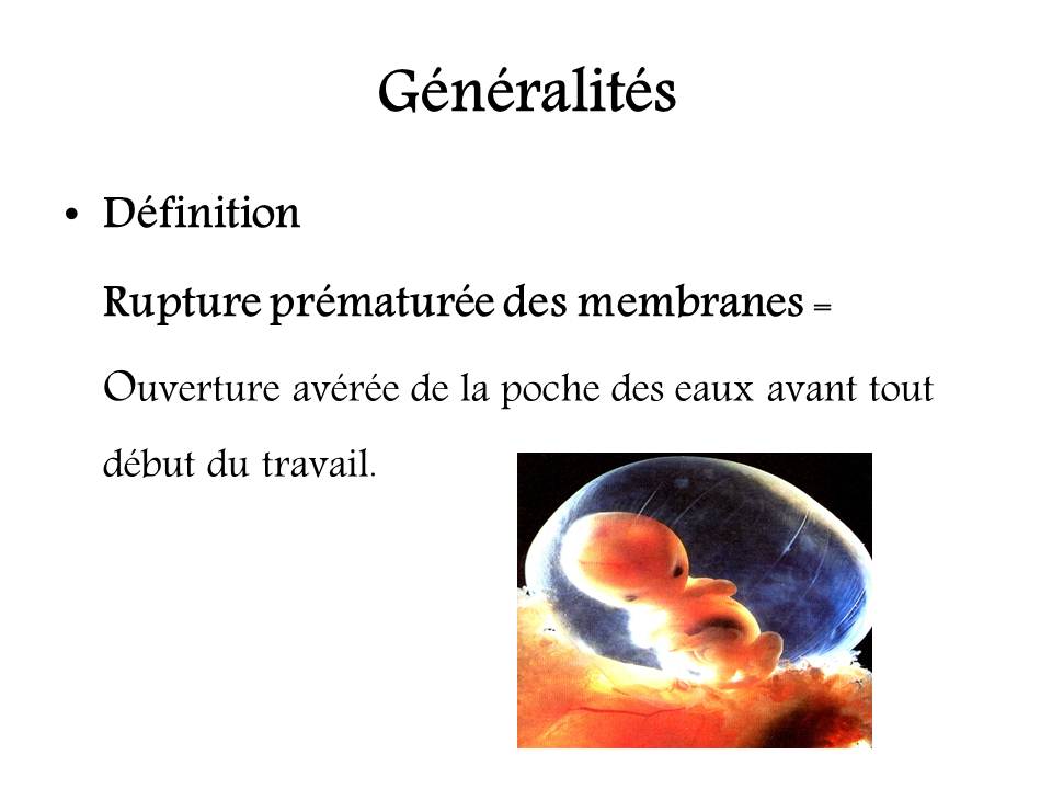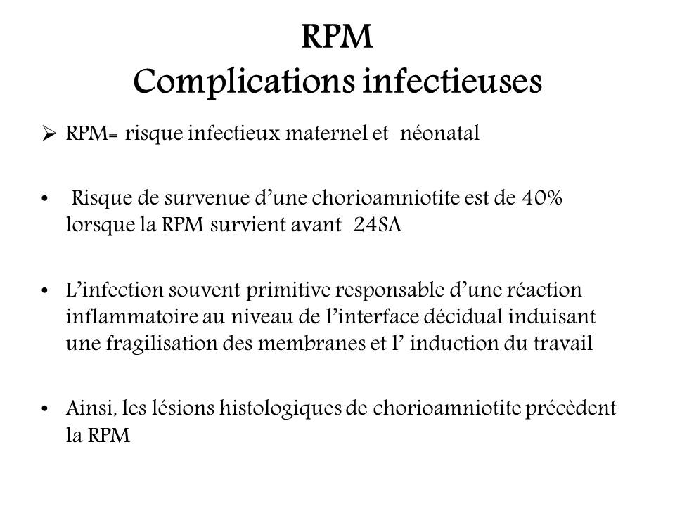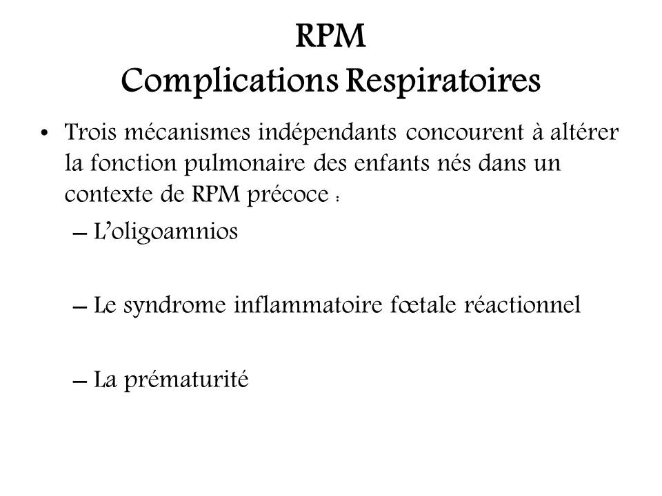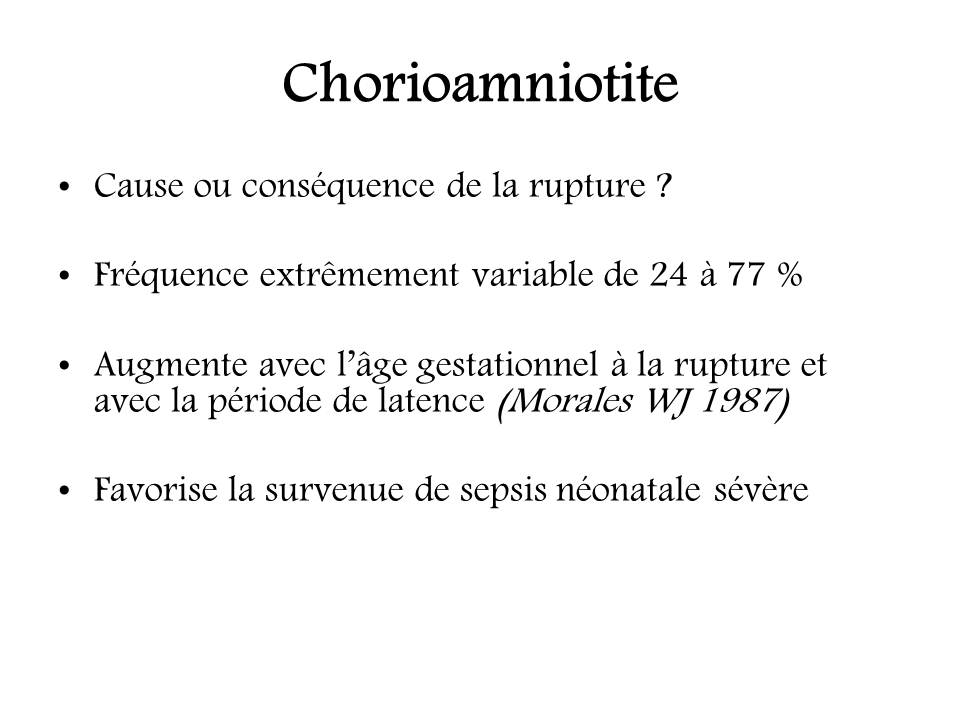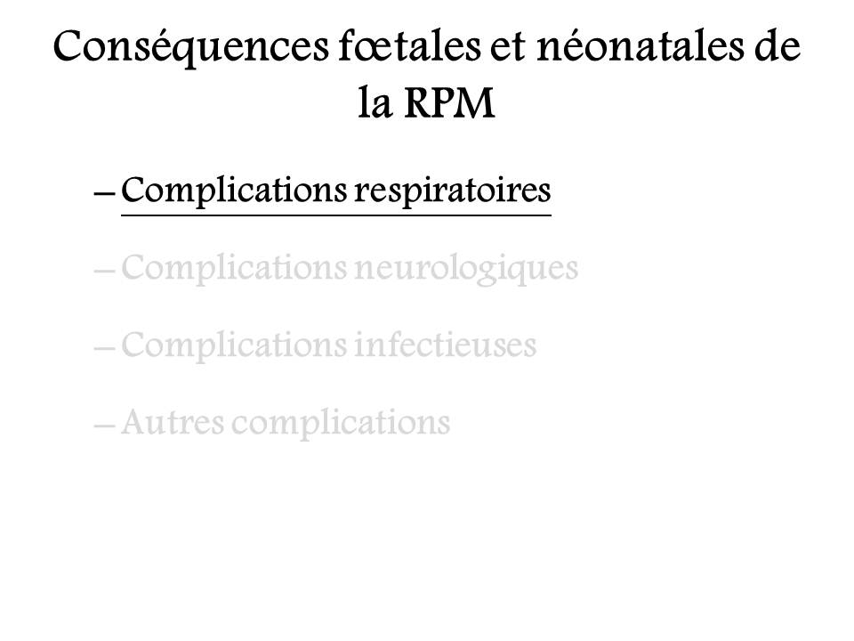 Rupture prématurée des membranes : conséquences fœtales et néonatales.