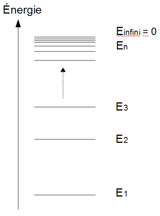 On peut représenter les niveaux d'énergies accessibles à l'électron comme sur le schéma suivant.