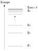 Évolution de l'énergie d'un électron dans un atome. Cette énergie dépend d'un nombre quantique (n) compris entre 1 (énergie la plus faible dans l'atome) et ∞ (E∞ = 0).