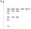 si l = 2, on aura lors 5 valeurs de m possibles (-2, -1, 0, 1 ou 2). On parlera d'OA de type dxy, dyz, dxz , dx²-y², et dz². Ces 5 orbitales sont aussi dégénérées.