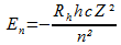 h est la constante de Planck, c, la vitesse de la lumière, Z, le numéro atomique de l'atome et n, le niveau sur lequel se trouve l'électron. Rh vaut 1,1.107 m.