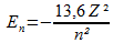 Dans ces éléments hydrogènoïdes, cette énergie se calcule avec la relation suivante :